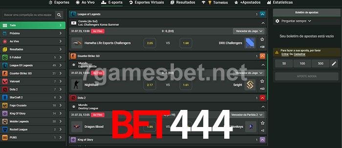 O Bet444 oferece uma grande seleção de opções de apostas em e-sports com probabilidades competitivas